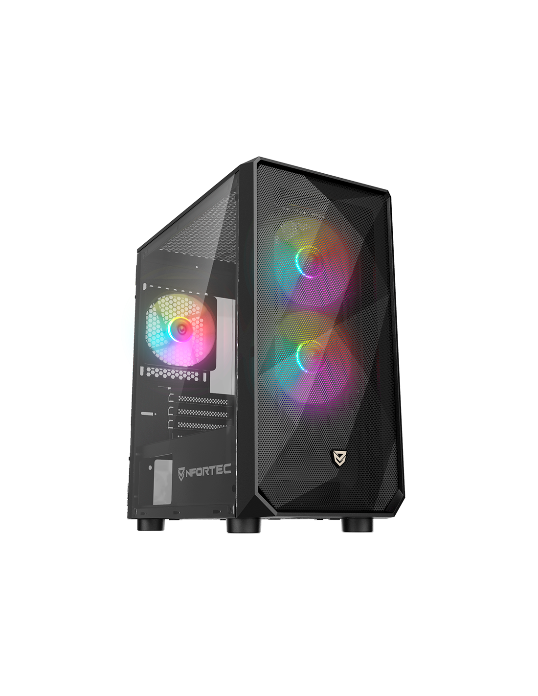 The new gamer tower Nfortec Dys comes ready to conquer your set-up, with its elegant design and its mesh front, which will make your components are perfectly ventilated. With ARGB technology so you can synchronize other components, and control the lighting from the front. Choose Dys in black or white color, and give it that avant-garde touch that your set-up is asking for.