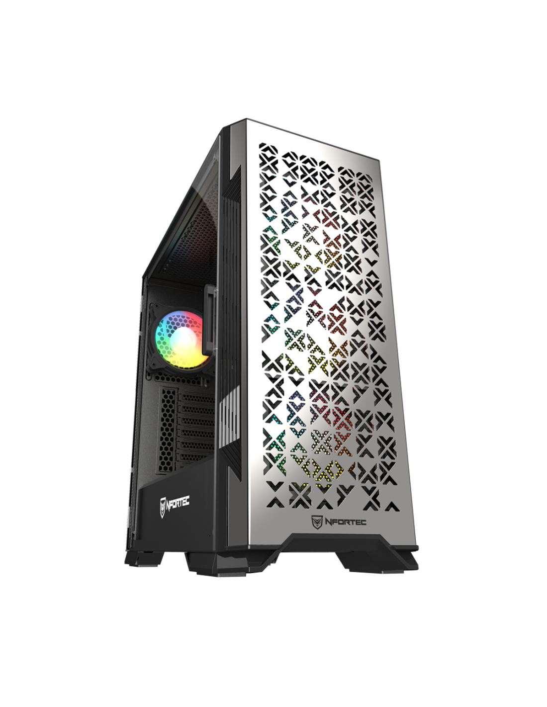 La torre gaming ATX Nfortec Nekkar llega para acaparar todas las miradas gracias a su diseño único con frontal de acero mallado. Ilumina tu set-up con sus 4 ventiladores ARGB incluidos y controla todos sus efectos de iluminación con su propia controladora compatible. Descubre sus dos variantes de color exclusivas: Blanco & Gris y Negro & Gun Metal.