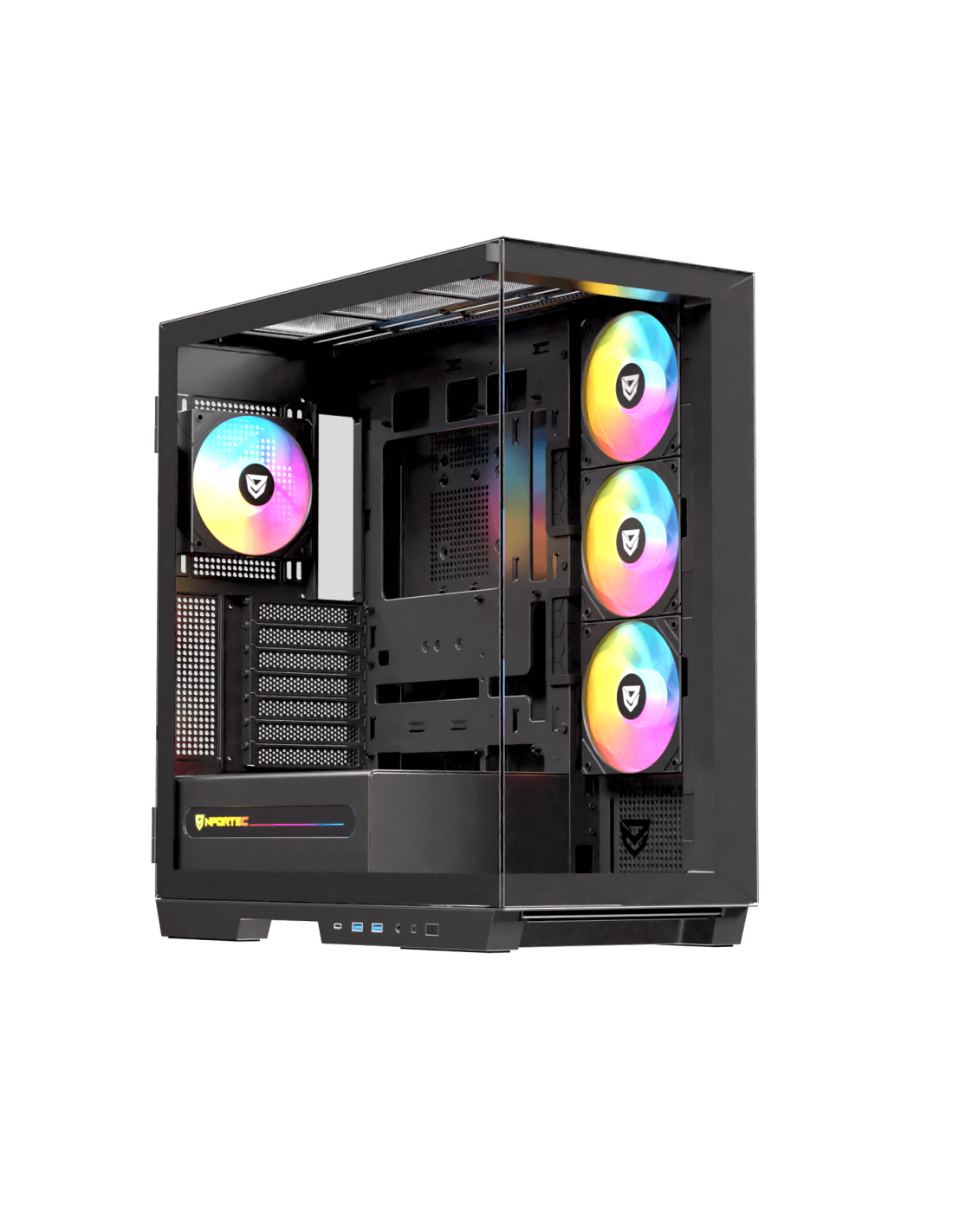 Expanda todas as possibilidades com esta colossal caixa gaming de câmara dupla aliada a múltiplas opções de expansão. Design compatível com EATX, ATX, Micro-ATX e ITX